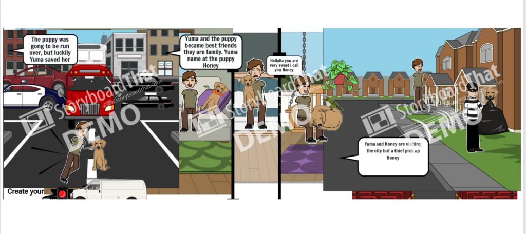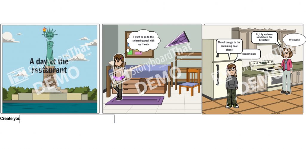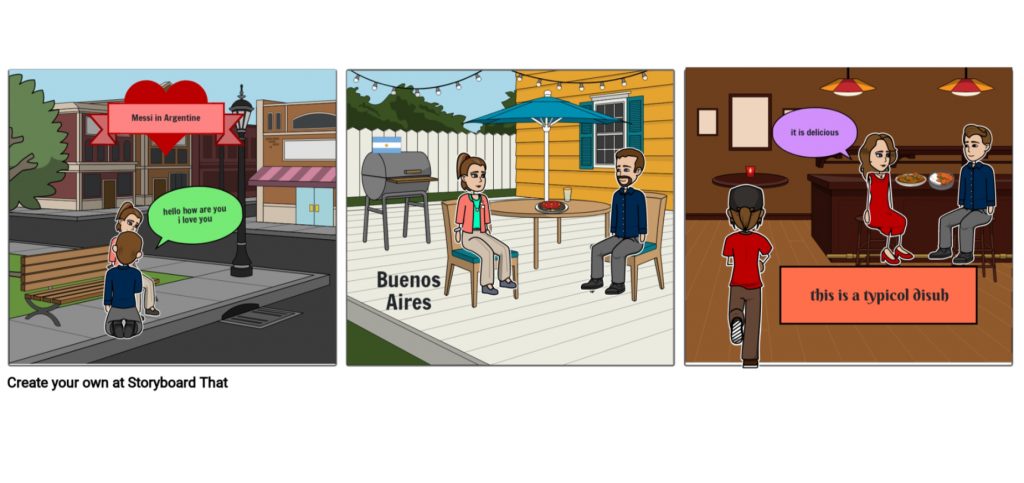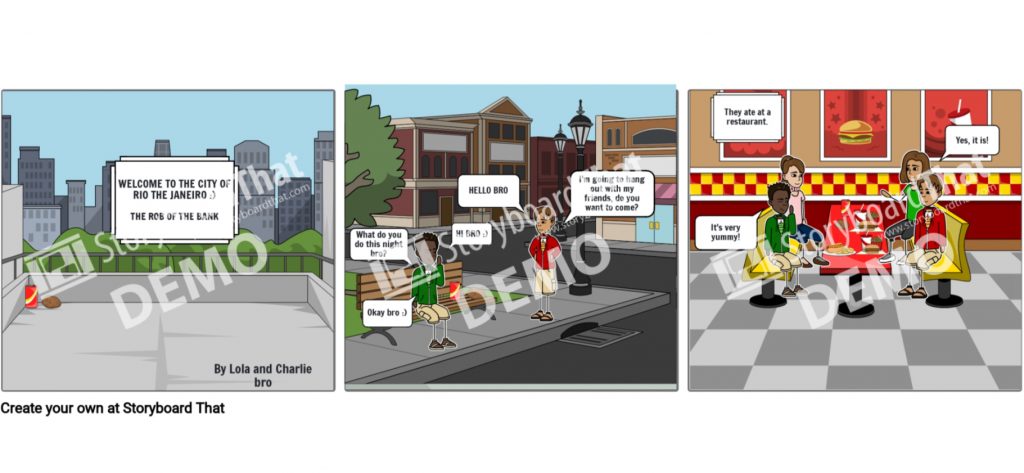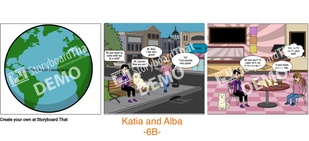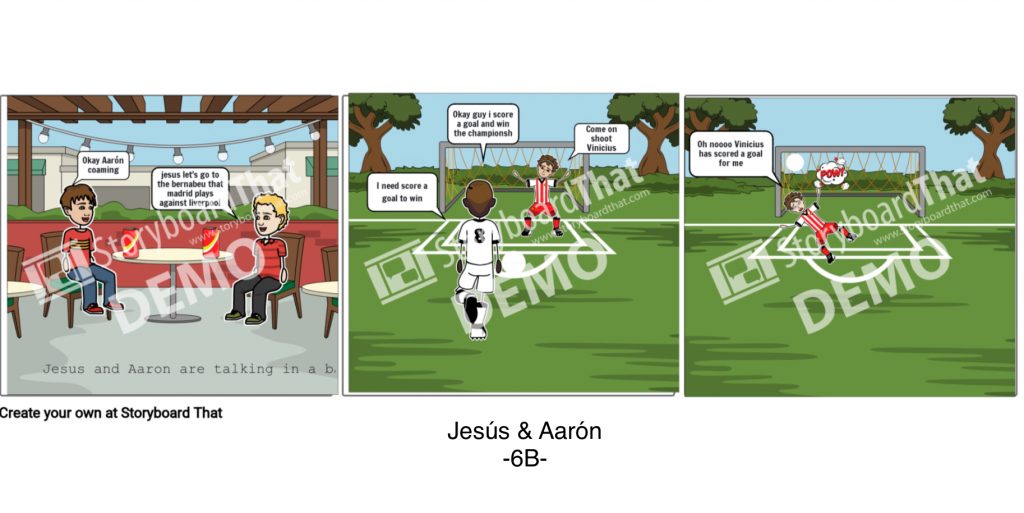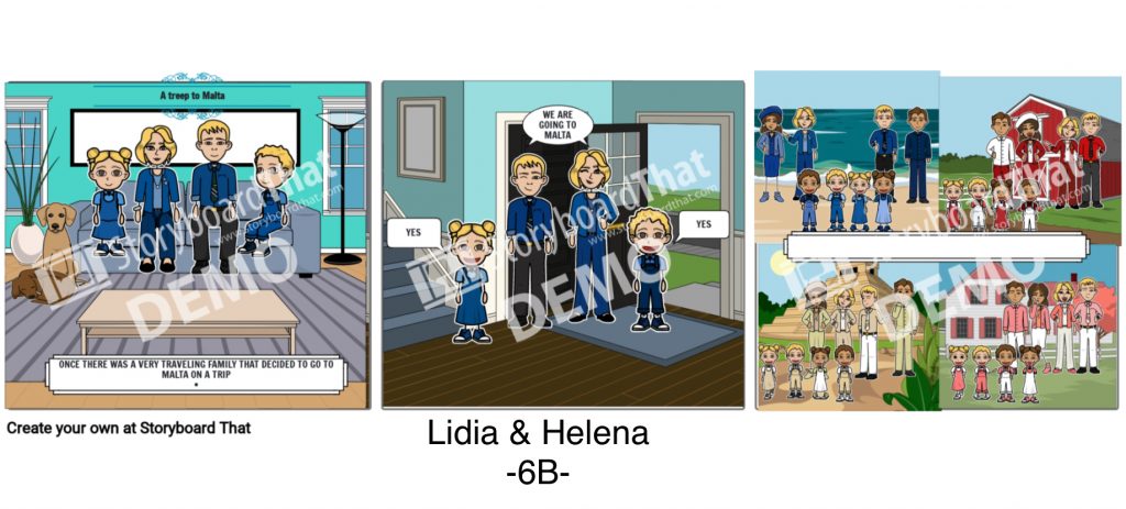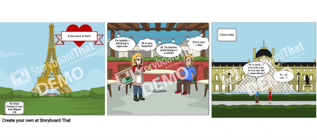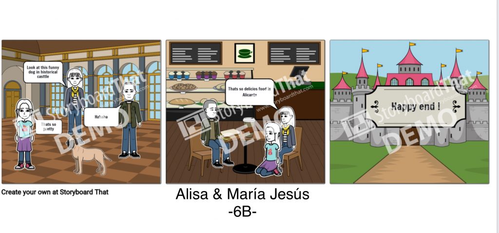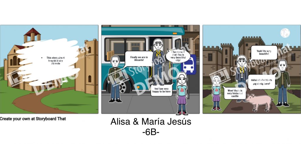 Our Year 6 students were making a super interesting project with teacher Juliet (from the University of Alicante). She explained to our pupils the parts of a comic strip and split the classes into pair or groups of three. After that, kids had to choose a city or country and invent a short story. They first wrote the storyline in a piece of paper, creating the characters, title and events happening in the comic strip. Next we started to go to the computer’s room to enter and get used to the online app needed: STORYBOARDTHAT.COM (free version only). So, in a couple of weeks the children made a surprising comic strips using both written English and new technologies. It was a great success.