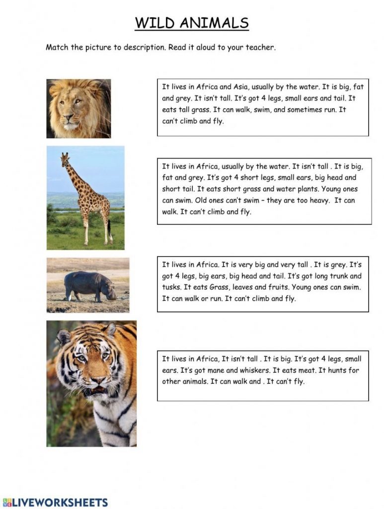 Here you can see some photos of Wild Animals and their names in English. Let’s practice!