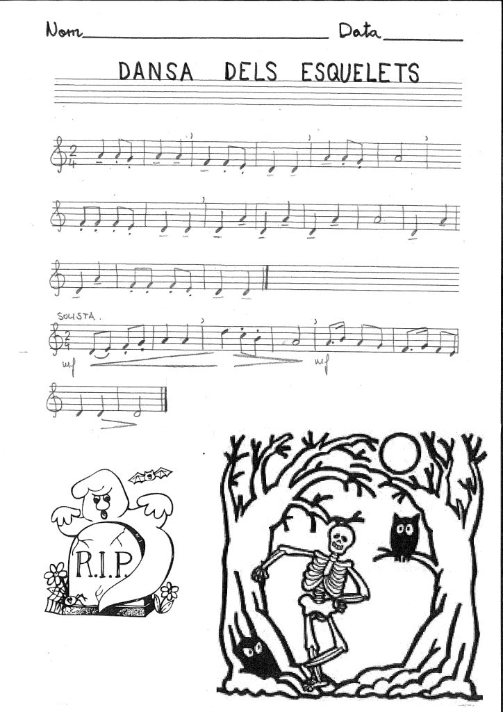 La dansa dels esquelets és una cançó escrita en el compás de 2/4 i en la tonalitat de re menor. Conta la llegenda que a la mitjanit del 31 d’octubre (Halloween), amb les dotze campanades, els esquelets ixen de les seues tombes i enceten una fantasmagòrica dansa tenebrosa que només acaba quan les campanes tornen a avisar-los que és hora de tornar-hi.
