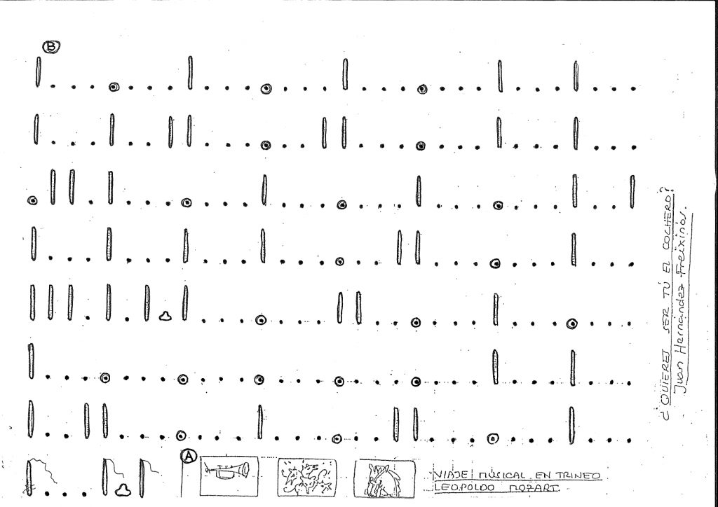 El musicograma pertany al mestre Juan Hernández Freixenós. Amb este musicograma seguirem el viatge que realitza un trineu per la neu. Primerament anirem a la lletra A, on sonarà una cridada de trompetes, després uns gossos i per últim el renilleig d’un cavall. Després anirem a la lletra B, quan comença el viatge. Vols ser tu el cotxer?